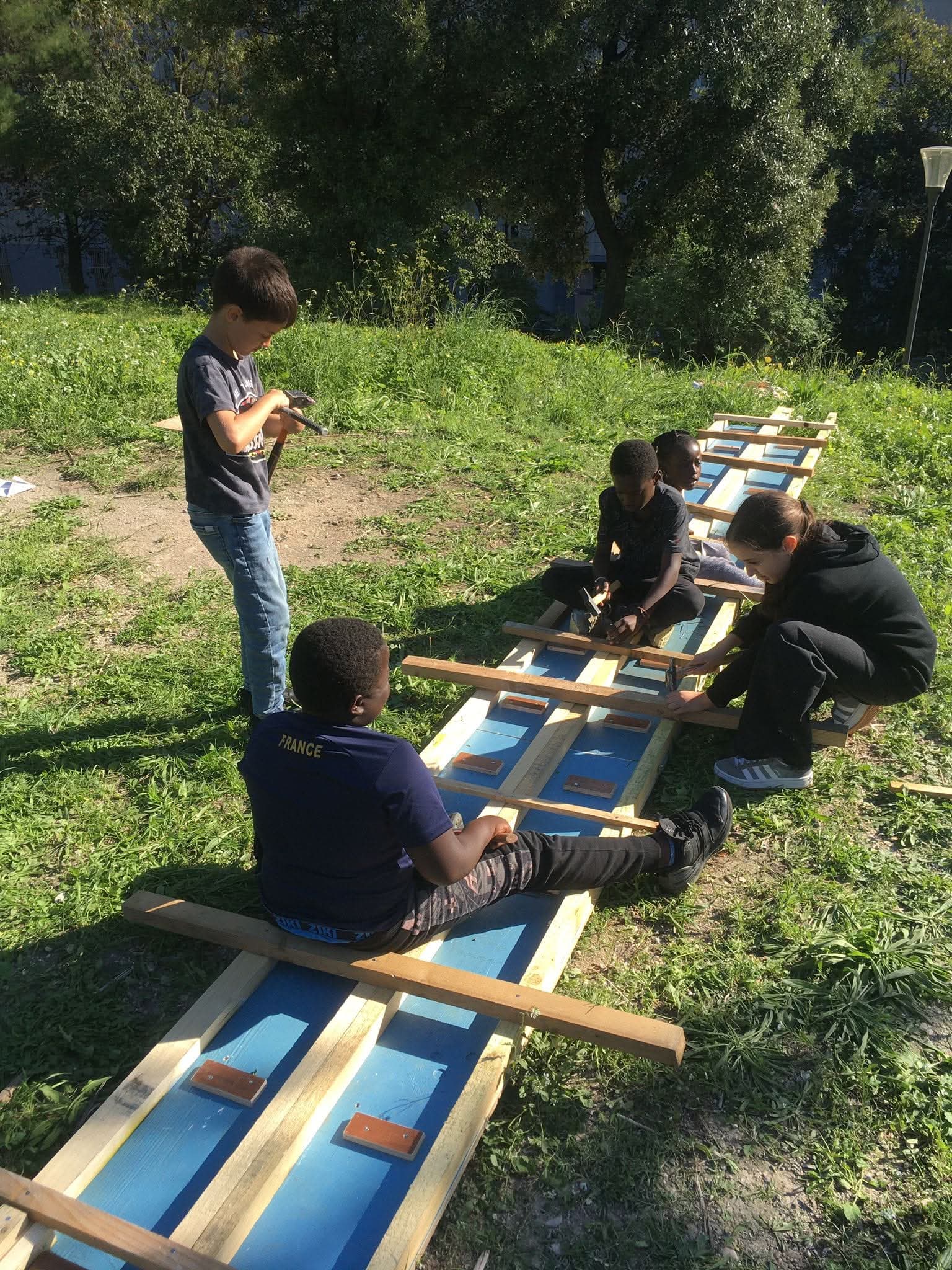 Cabanes, balançoires, voitures, avions, coutures, poteries…L’engouement de faire et de se confronter à la matière, aux autres et à l’espace a souligné le réel besoin des personnes de découvrir et d’agir sur le réel. Au Terrain d’Aventures de La Jougarelle faire ensemble permet de partager de riches moments avec les enfants et les adultes (parents, grands-parents, familles proches…), cette expérience est l’opportunité de réfléchir et d’expérimenter des principes forts de notre projet d’éducation nouvelle.